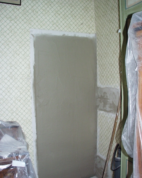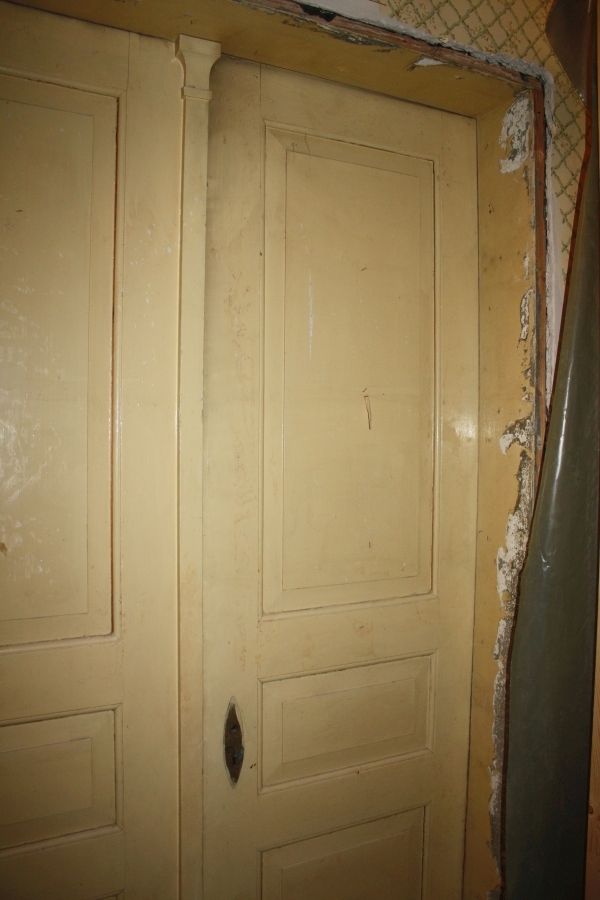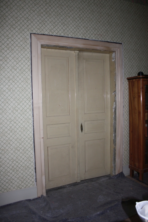 After having removed the cupboard the bricking up of the double door could be removed again. We found that besides an outer frame everything belonging to a door was yet existing
