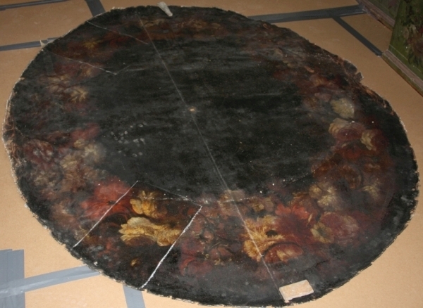 we found again by chance the ceiling ´s picture in the archives room whhat had been removed in 1985. Hopefully one day we´ll have enough money to restore and refix it in its original situation.