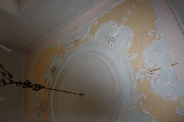 Atfer closing the cracks professionally and after exact diagnosis we restored the original setting of Stucco and walls. We repainted the walls with chalc paint, coloured with beechs´ash in an old tecnic (so called "cross stroke"), We cleaned the stucco and completed it carefully. Now it shines again in its original colouring!