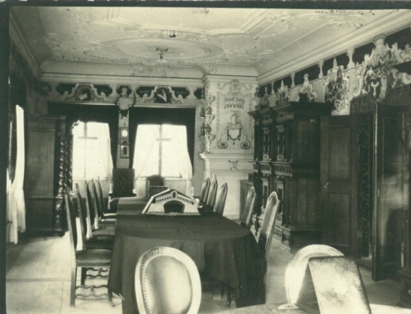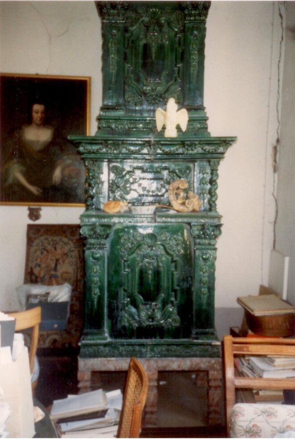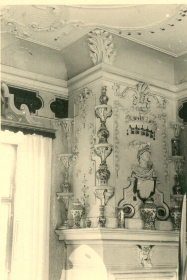 In der Mitte des 19. Jahrhunderts haben ihn meine Urgroßtanten mit einer von ihnen handgemalten Tapete (goldene Patrizierwappen auf türkisfarbenem Untergrund) geschmückt. So sah das 1920 aus