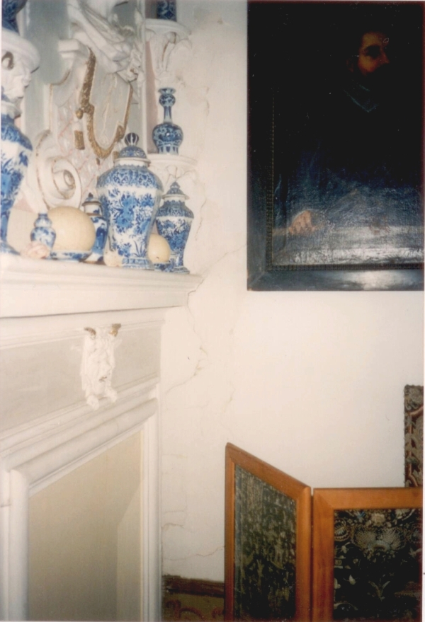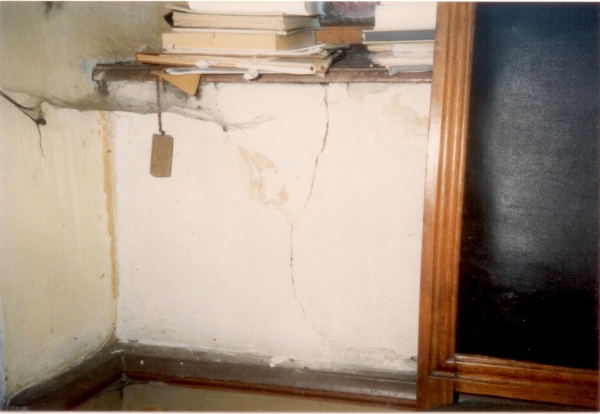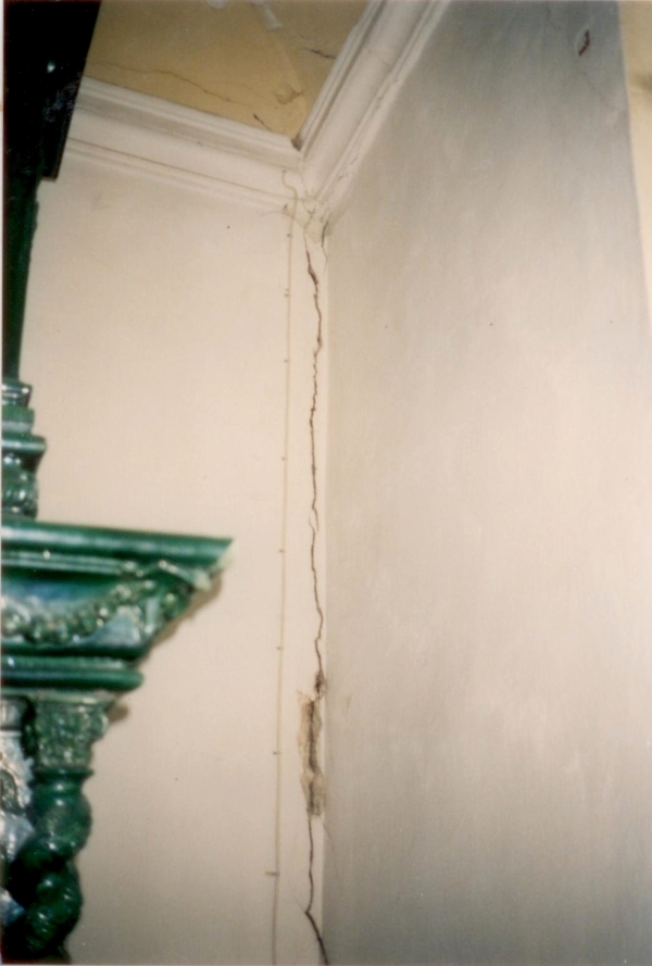 Auch die Stuckdecke hatte massive Risse erlitten. Sie hing in der Mitte 45 cm (!) durch