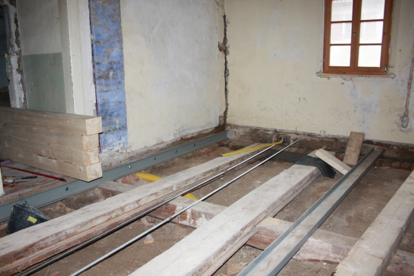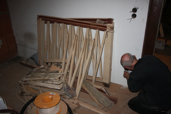 Because of all this (and because the last inhabitants stored in the roof room over 40 (!) tons of metall things) the Verwaltershaus was very much in danger of collapsing. After been screwed together lengthwise and crosswise,