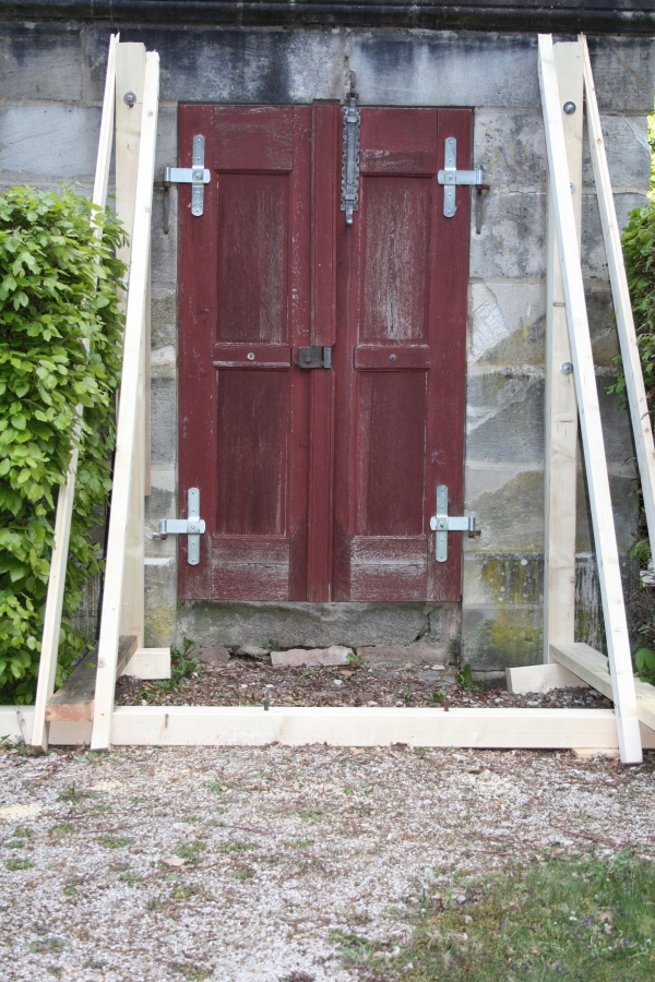 Letzte Woche haben wir feststellen müssen, dass das Himmelgartentor nicht mehr sicher steht. Inzwischen ist das Ganze so wackelig, dass wir es von innen uind |