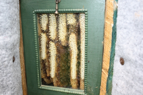 Wie man sehen kann, fühlen sich die Bienen in den Beuten sauwohl und haben innerhalb von weniger als einem Vierteljahr die ganze Höhlung mit ihren Waben vollgebaut. |